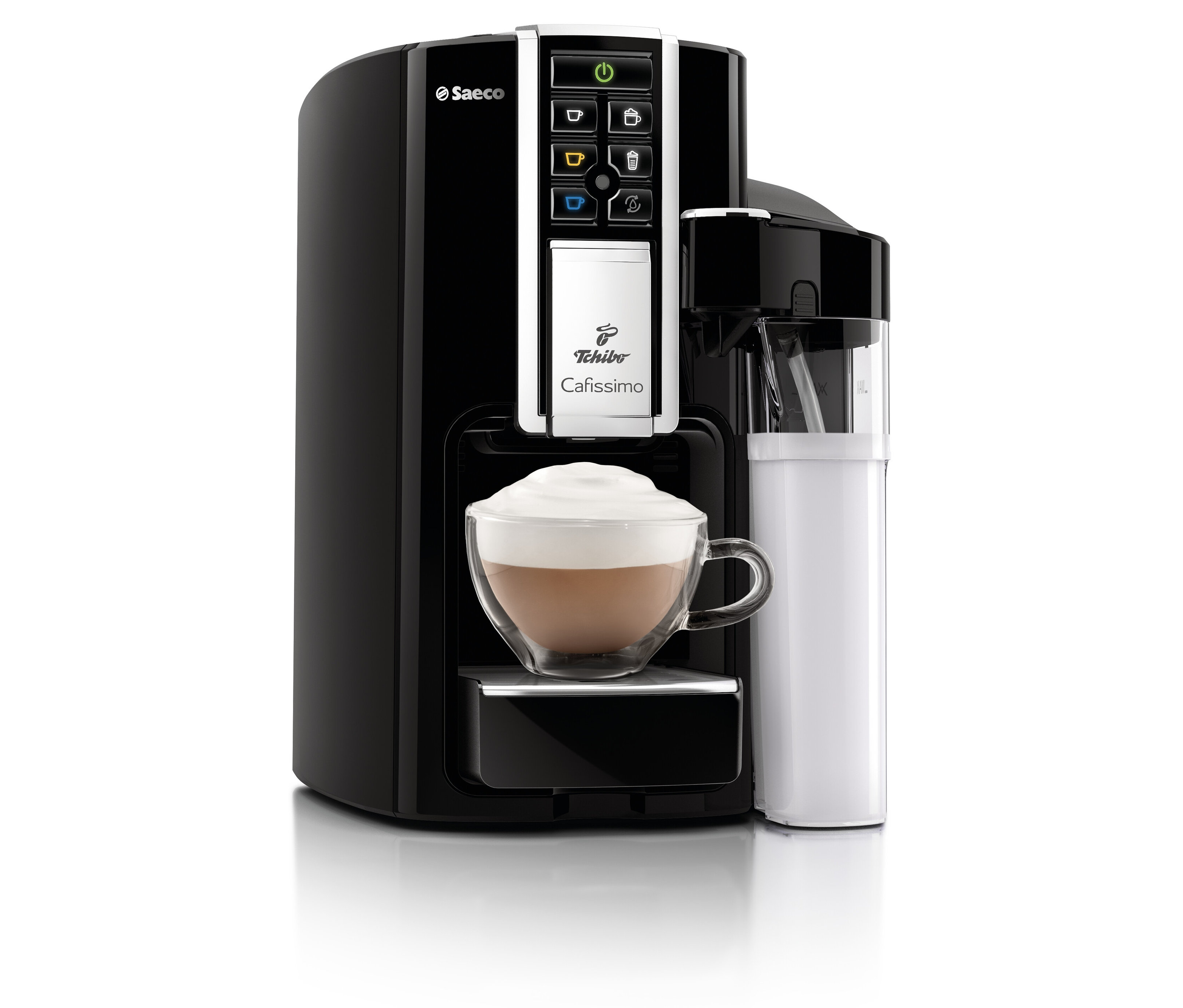 Statt über die Kapselkorpusfarbe erkennen Sie nun über die Tassen-Symbole auf den Kapselfolien, welche Taste Sie auf Ihrer Cafissimo Maschine drücken müssen. Denn auch auf den Bedienknöpfen der Maschinen finden Sie die gleichen Tassen-Symbole wieder.