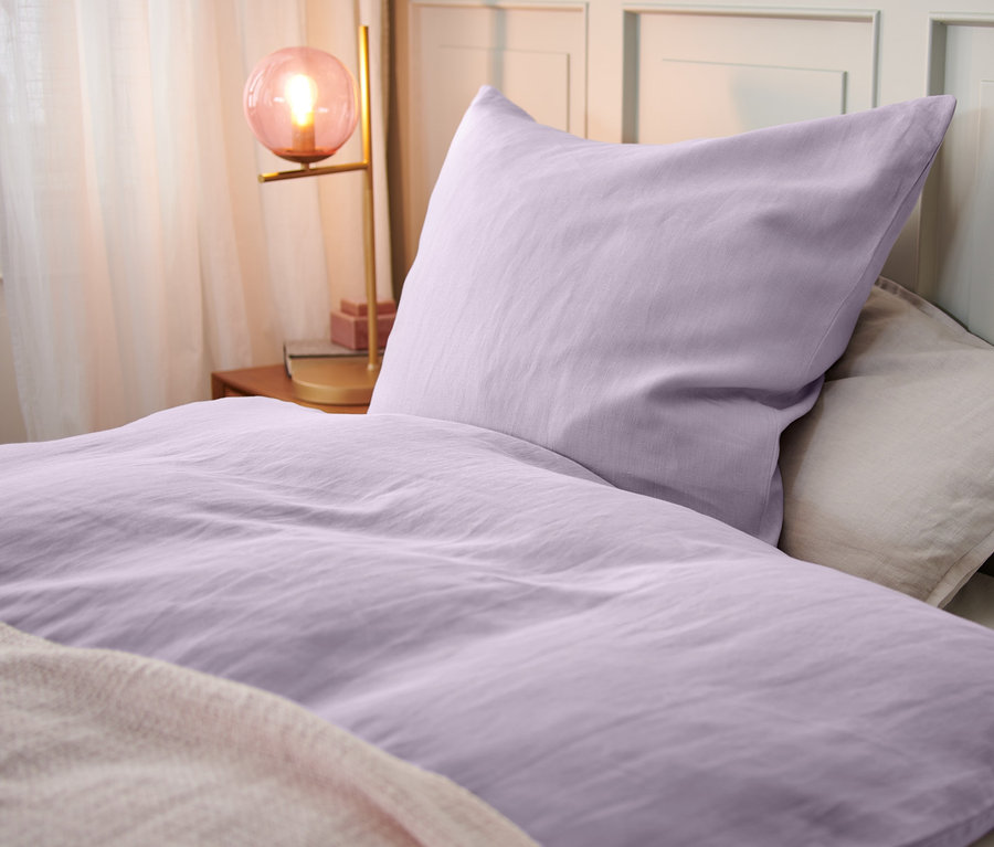 Bettwäsche aus gewaschenem Leinen, Normalgröße, fliederfarben