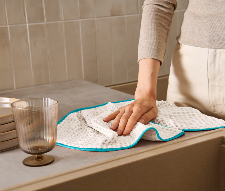 - Auch zum schnellen Trockenwischen und Polieren von anderen Oberflächen wie z.B. Arbeitsflächen, Fliesen, Waschbecken