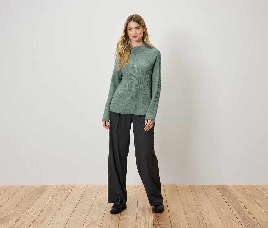 Grobstrickpullover mit Zopfmuster, salbei
