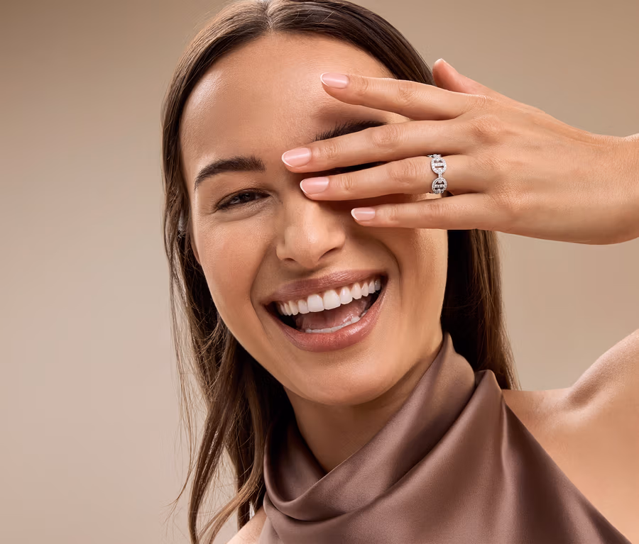 Silber ist ein Edelmetall, das die höchsten Licht-Reflexionseigenschaften aller Metalle hat, wodurch es seinen faszinierenden strahlend weißen Glanz erhält. Da Feinsilber sehr weich ist, wird es mit anderen Metallen legiert, um seine Eigenschaften zu verändern und es härter zu machen. Für unsere edlen Schmuckstücke verwenden wir Sterlingsilber. Es besteht aus 925 Teilen Feinsilber und 75 Teilen anderen Metallen, meist Kupfer. Durch die Reaktion mit dem in der Luft enthaltenen Schwefel läuft Silber mit der Zeit an. Damit unsere Silberschmuckstücke ihre schöne helle Farbe behalten, sind alle mit Rhodium, einem Platinmetall, oder Gold beschichtet.