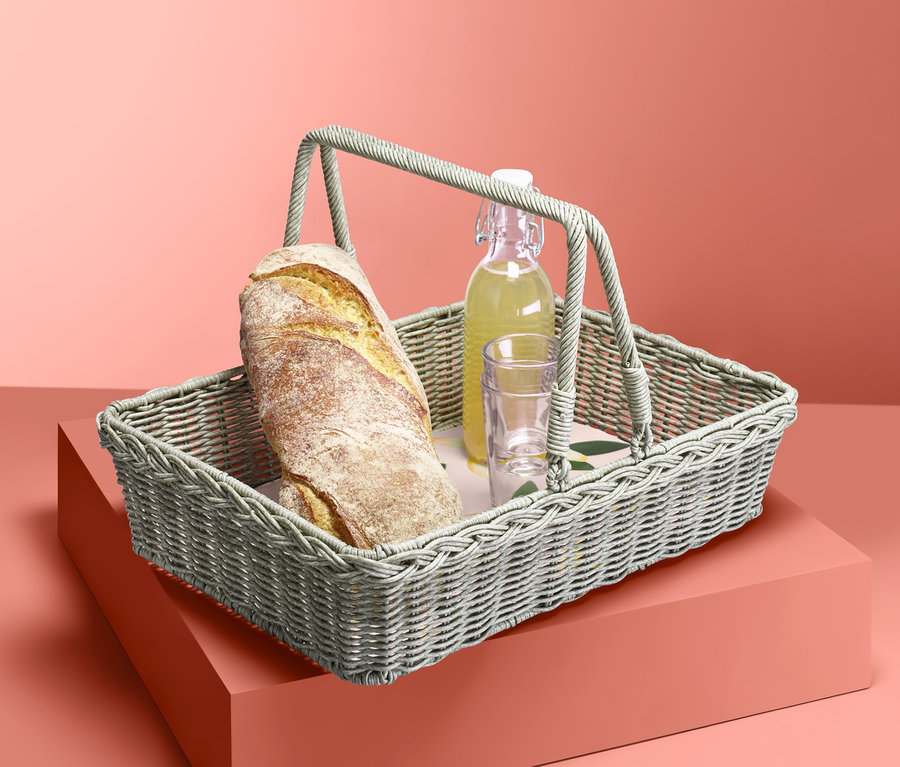 - Robustes Metall mit Kunststoffummantelung in Korbgeflechtoptik – feucht abwischbar
