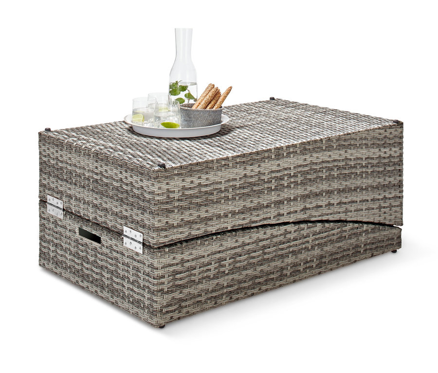 Die Liege ist aus hochwertigem Polyrattangeflecht gefertigt und dadurch ausgesprochen UV- und witterungsbeständig. Im zusammengeklappten Zustand kann die Auflage einfach im Gartenmöbel selbst verstaut werden und mit dem integrierten Griff lässt sich die Liege einfach transportieren.