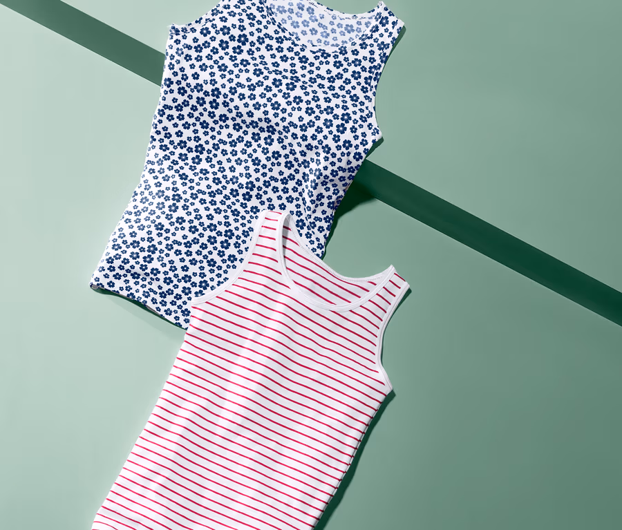 - Weiß-rot gestreift und weiß mit Blumen-Alloverprint