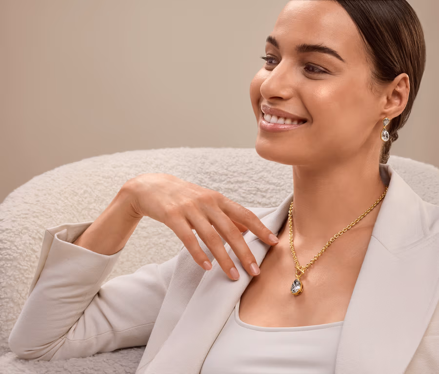 - Tropfenförmiger Anhänger mit facettiertem Glaskristallstein
