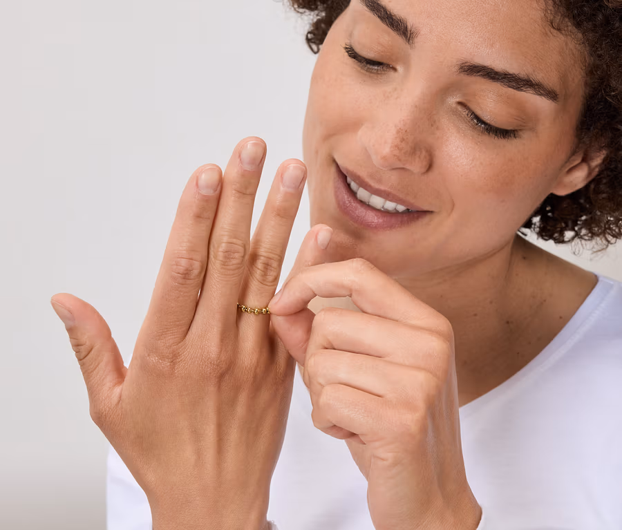 - Achtung: Ring vor dem Händewaschen abnehmen, da Wasser in die Kügelchen eindringen kann