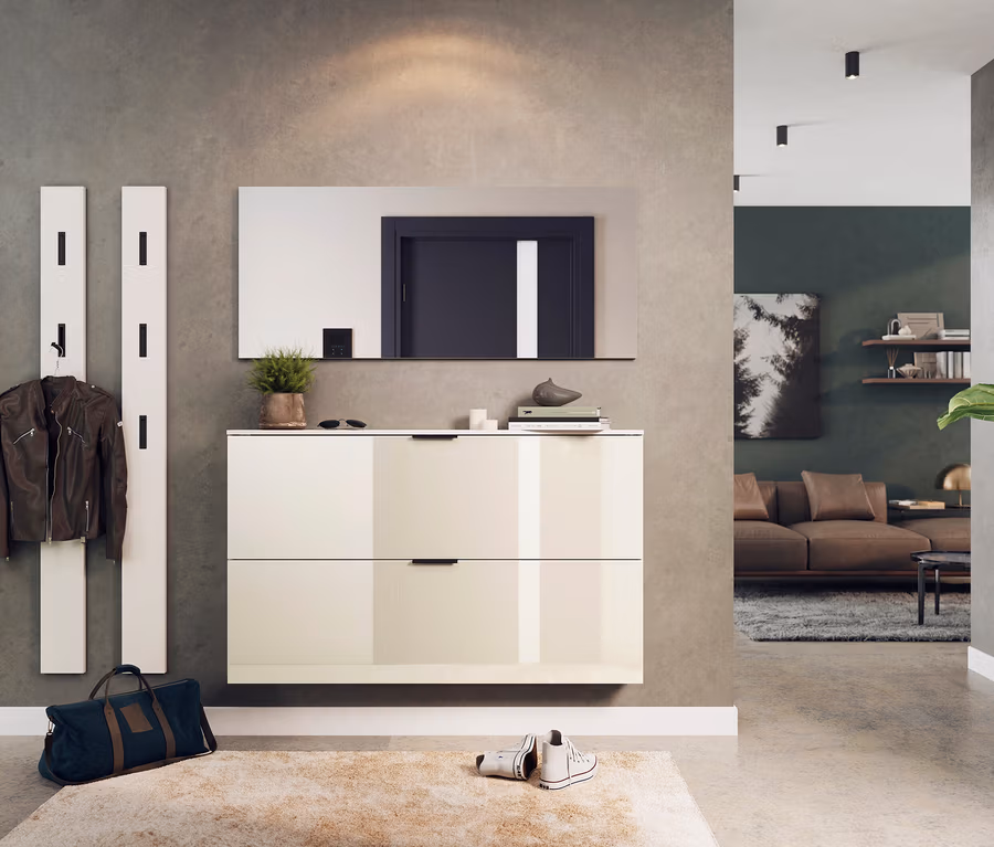 - Platzsparendes Unterbringen in Metall-Schuhkörben