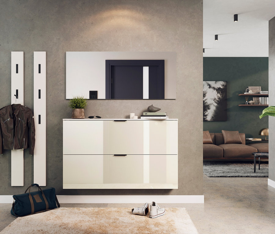 • Platzsparendes Unterbringen in Metall-Schuhkörben