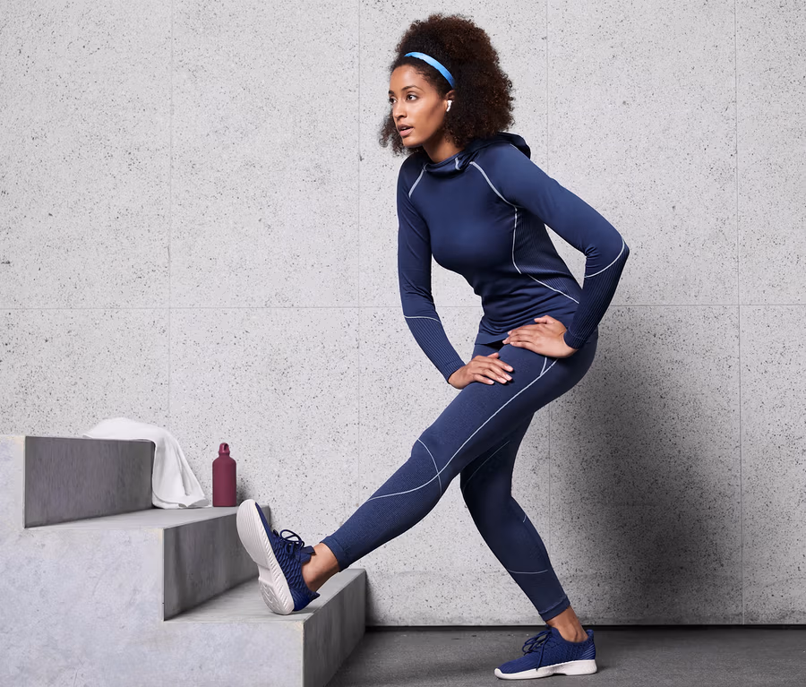 - Unterschiedliche, nahtlos miteinander verbundene Strickzonen für ein optimales Körperklima