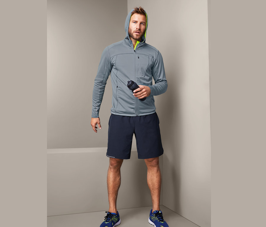 Die bequeme Laufjacke hat einen gewendet verarbeiteten Reißverschluss, der dank Kinnschutz nicht zu spüren ist und die Kapuze lässt sich wie der Saum mit einem Kordelzug regulieren. Die weich angeraute Innenseite bewirkt eine optimale Wärmeisolierung und Elasthan sorgt für Formbeständigkeit und einen perfekten Sitz – bei voller Bewegungsfreiheit. Portemonnaie, Handy und Schlüssel finden in zwei Eingrifftaschen und einer Brusttasche ihren Platz.