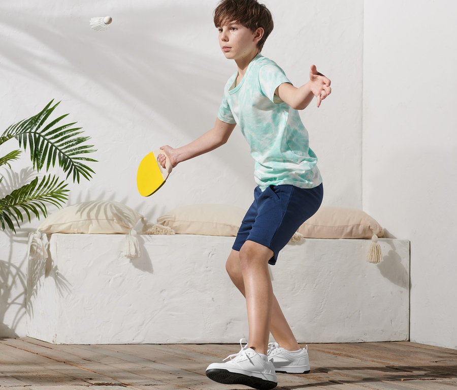- Spiel mit tischtennisartigen Schlägern und Badmintonball