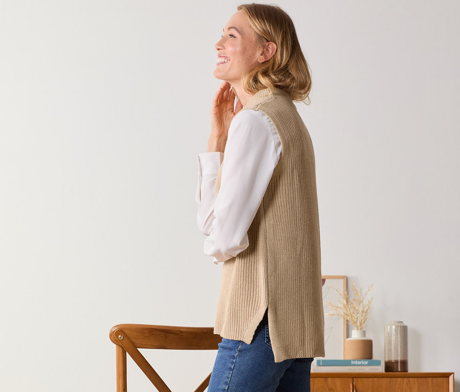 - Hochgeschlossener Rundhalsausschnitt mit elastischem Rippbündchen
