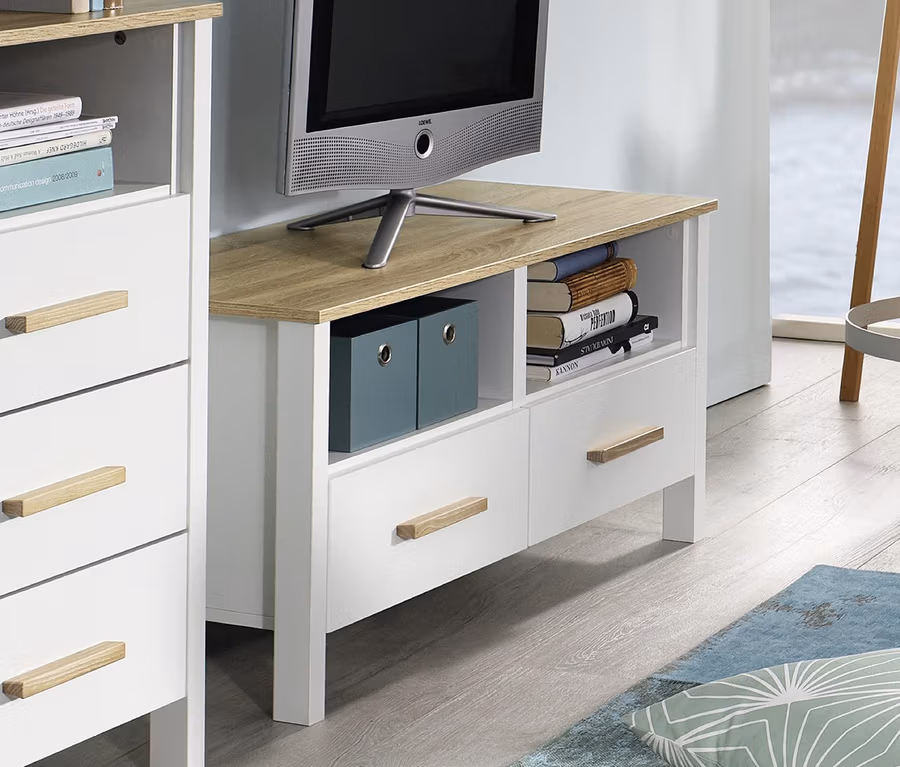 - Lowboard mit 2 Schubladen und 2 offenen Fächern für ausreichend Stauraum