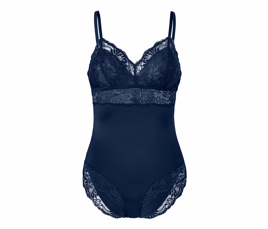 Die blickdichten Cups, der Unterbrustbereich und die Beinausschnitte sind aus dekorativer, weicher Spitze gefertigt und auch am oberen Rücken gibt es einen kleinen Spitzeneinsatz. Der Body kann optisch mit seinem seidigen Glanz punkten und lässt sich klassisch unter der Kleidung tragen – er kann sich aber auch sehen lassen, zum Beispiel elegant unter dem Blazer.