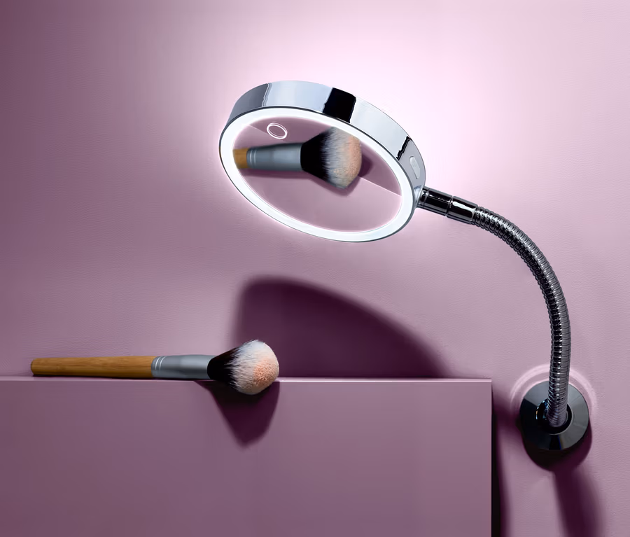 Damit auch jeder Liedstrich gelingt, wird das, was man in beiden Spiegeln sieht, durch die 30 integrierten LEDs gleichmäßig und blendfrei ausgeleuchtet. Sie lassen sich über einen Sensorschalter ein- sowie ausschalten und werden über einen integrierten Akku mit Strom versorgt. Zum Wiederaufladen per Micro-USB kann der Kosmetikspiegel einfach abgenommen werden.
