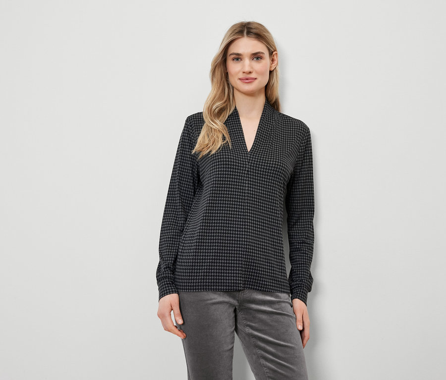Blusenshirt mit V-Ausschnitt, Hahnentritt