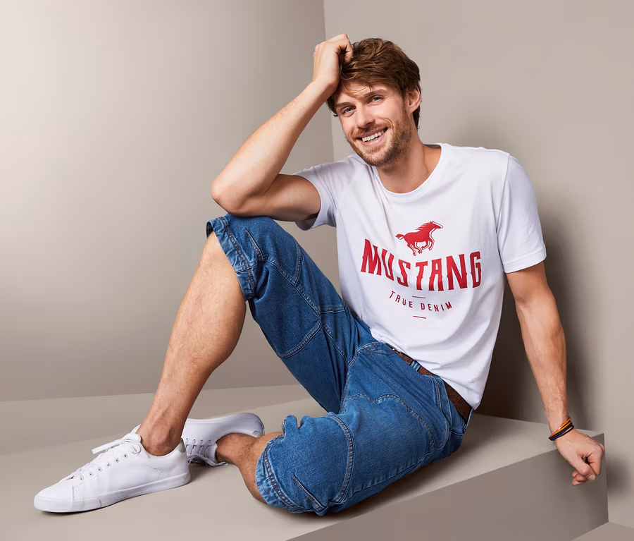 Bei lässigen Freizeit-Outfits ist die Jeans sogar an wärmeren Tagen oft die erste Wahl – es gibt sie schließlich auch als kurze Hose. Und natürlich gibt es hier von der Traditionsmarke Mustang eine Variante in besonders cooler Optik: Die Bermuda-Shorts „Fremont“ haben Ziernähte an den Knien sowie den Oberschenkeln und ihre spezielle Waschung verleiht ihr den typischen Stonewashed-Look. Die Herrenhose hat zwei seitliche Taschen und zwei Gesäß-Spatentaschen, von denen eine mit einer Klappe versehen ist. Die ideale Freizeithose für sommerliche Temperaturen.