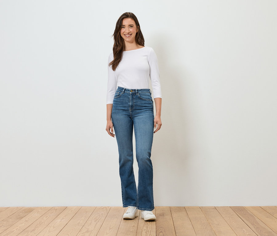 - Regular Fit | Bootcut Leg | High Rise | Long Length