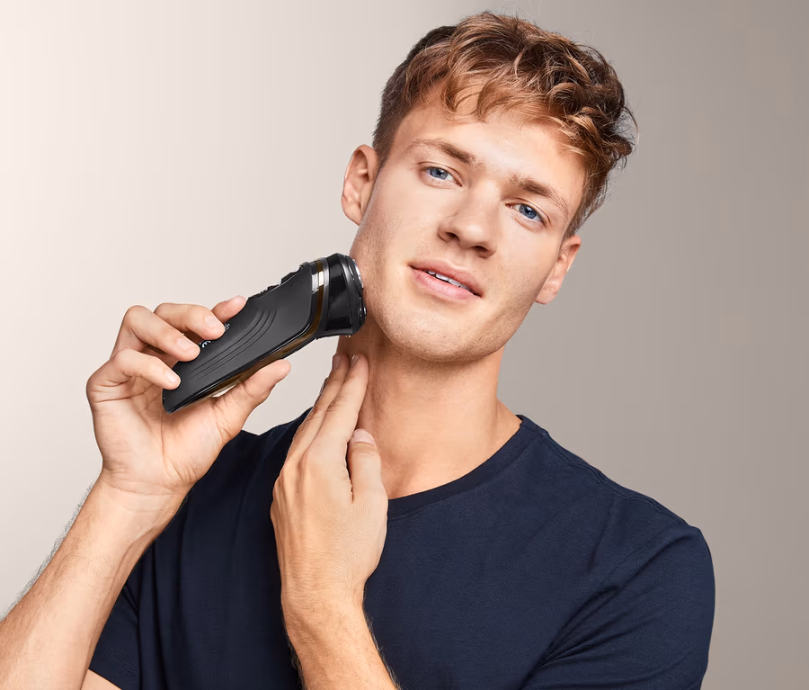 - Präzisionsschneidesystem mit 3 federnd gelagerten Doppelring-Scherköpfen für eine effiziente Rasur