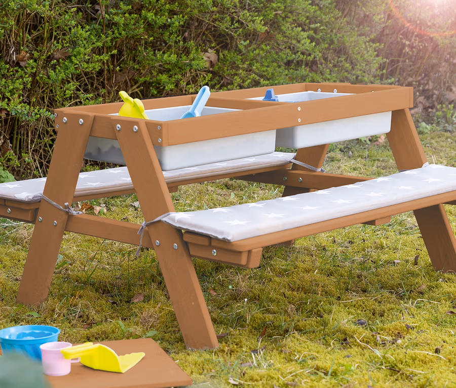 roba Kinder-Outdoor-Sitzgruppe »Picknick for 4«, mit Spielwannen, Teakoptik