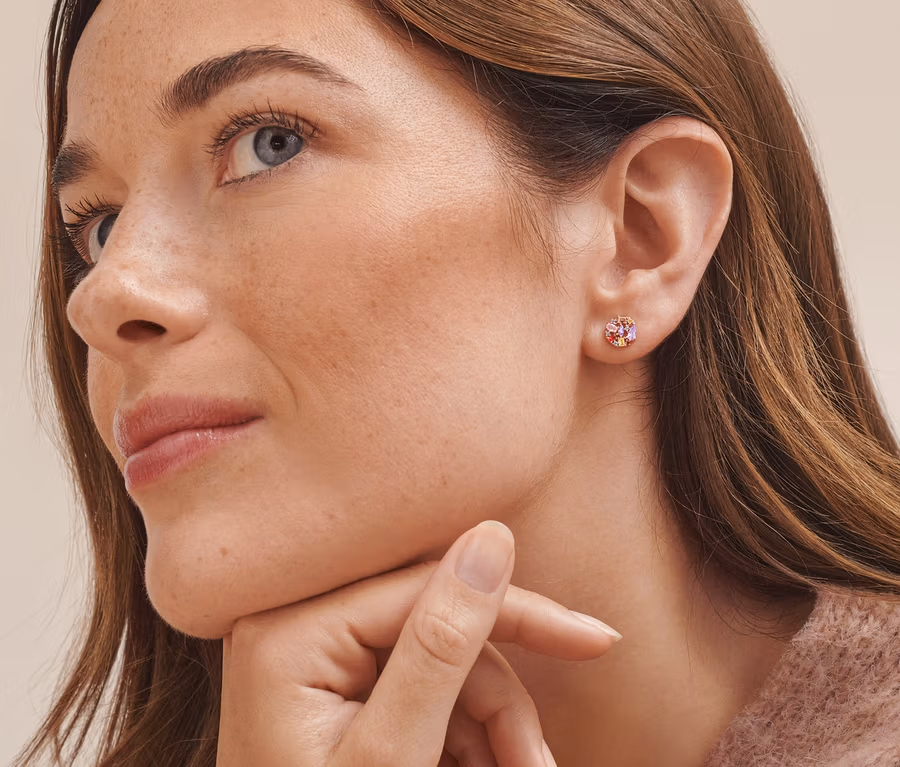 Ohrstecker, 925 Silber rosévergoldet, mit farbigen Zirkonia