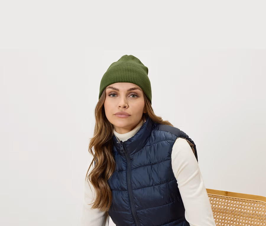 • Diese Mütze beinhaltet Fasern aus nachhaltigem Holz.