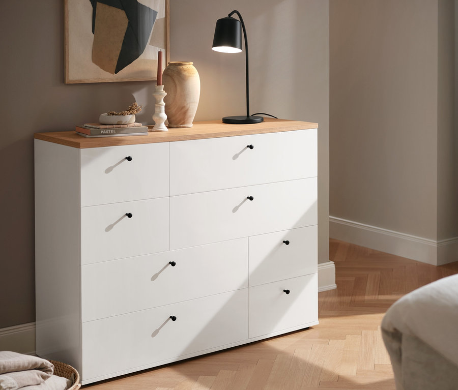 - Kommode inkl. höhenverstellbarer Kunststofffüße – fester Stand auch auf unebenen Flächen