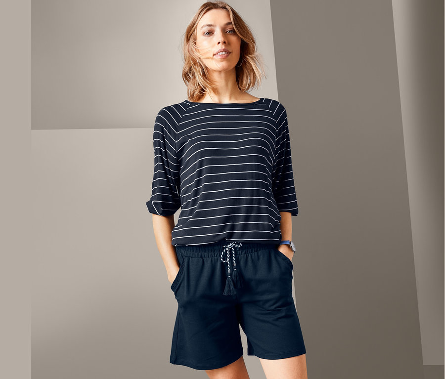 Der Sommer kann kommen – mit diesen Jerseyshorts in angenehm weicher Baumwoll-Mischqualität sind wir bestens darauf vorbereitet. Die Hose wird durch einen breiten, elastischen Komfortbund herrlich bequem. Dieser ist außerdem mit kleinen Raffungen versehen und hat ein Bindeband mit Quasten sowie silberglänzendem Garn. Auch die zwei Eingrifftaschen haben mit ihrer Stickerei einen sommerlichen Touch. Gefertigt wurden die Shorts mit Bio-Baumwolle, Elasthan sorgt dabei für Formbeständigkeit, einen perfekten Sitz und einen hohen Tragekomfort.