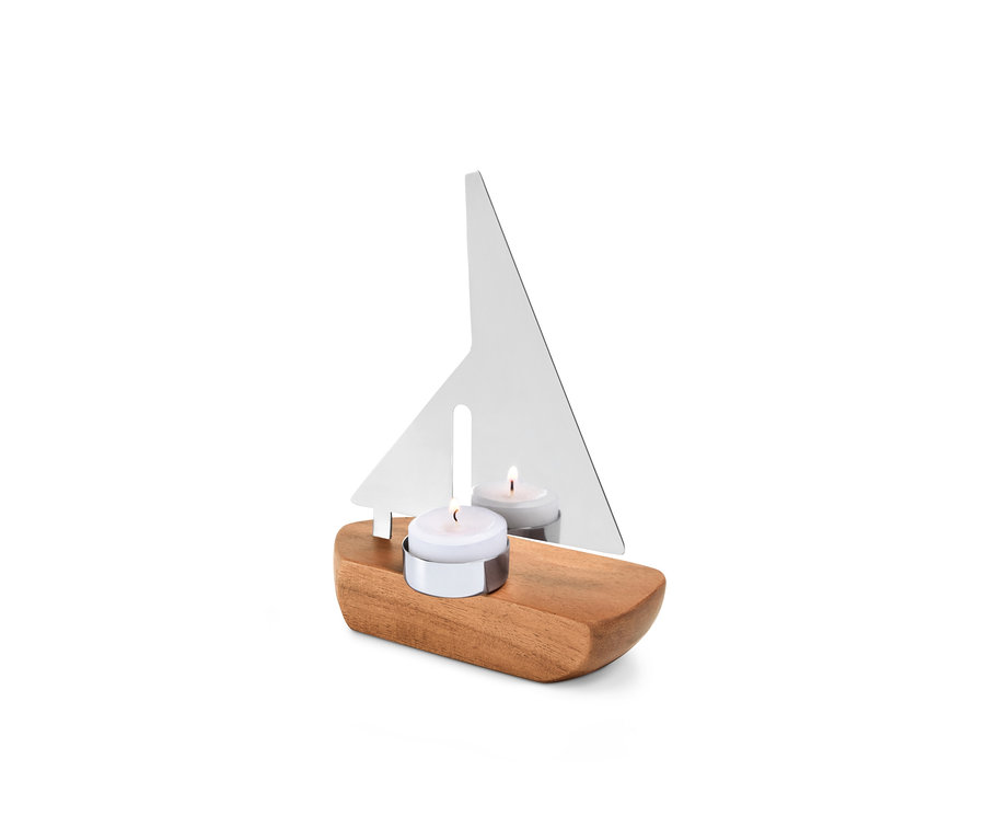Der robuste Stahl verleiht Segel und Teelichthalterung einen schönen Glanz. Und das Boot aus FSC®-zertifiziertem Holz sorgt für einen natürlichen Look. Ideal für schöne Sommerabende in der Wohnung, auf dem Balkon oder auf der Terrasse.