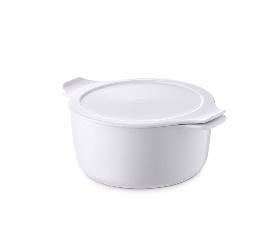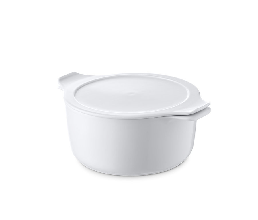 Der Topf ist aus patentiertem inducTHERM®-Porzellan gefertigt – einem besonders robusten und langlebigen Material, das beim täglichen Einsatz mit seiner schnitt-, kratz- und abriebfesten Oberfläche überzeugen kann. Und mit seiner Vielseitigkeit: Der Topf ist flammenfest sowie temperaturbeständig von –20 °C bis +400 °C und deckt damit alle möglichen Einsatzarten ab – von der Tiefkühltruhe über die Mikrowelle bis zum Grill, mit allen Herdarten inklusive Induktion kommt er ohnehin zurecht.