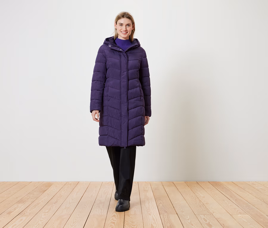 Steppmantel mit Kapuze, pflaume