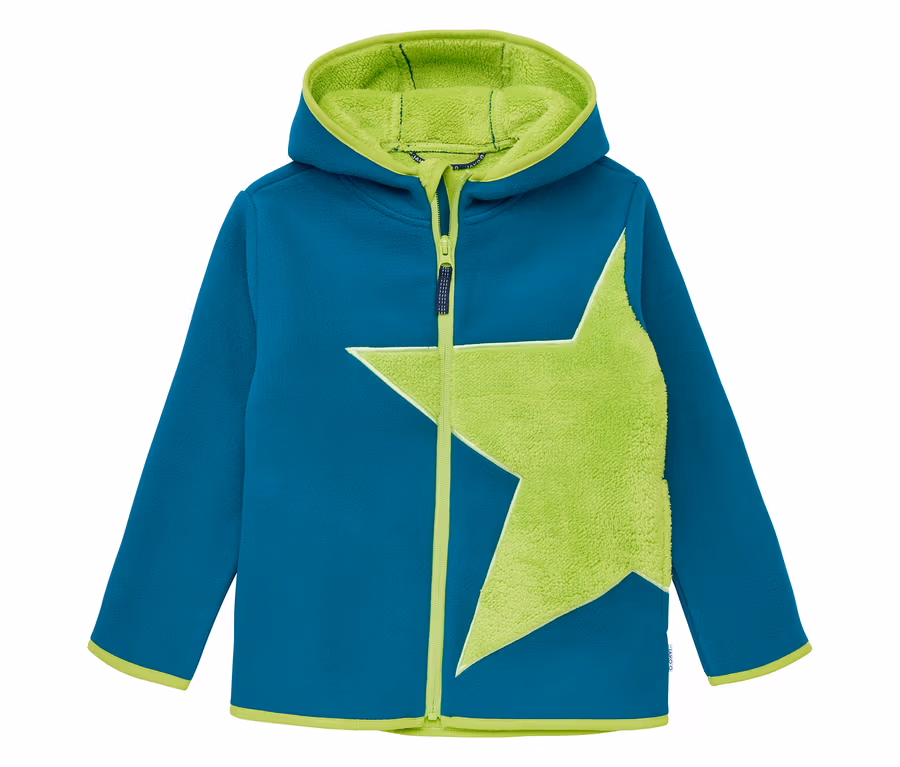 - Kuschelfleecejacke in fröhlichen Farben mit Kontrast-Applikation