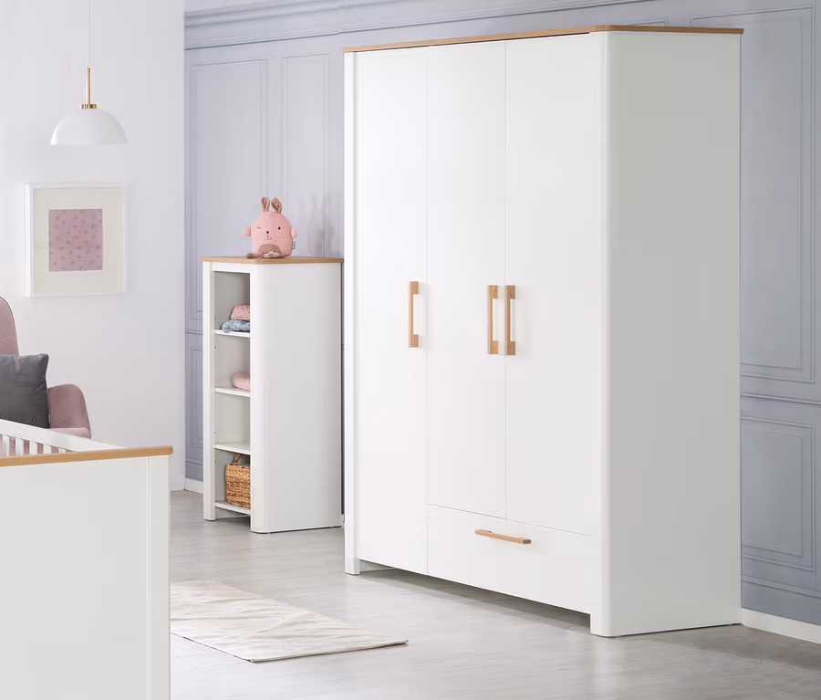 • Fächer, Schubladen und Kleiderstange sorgen für Ordnung
