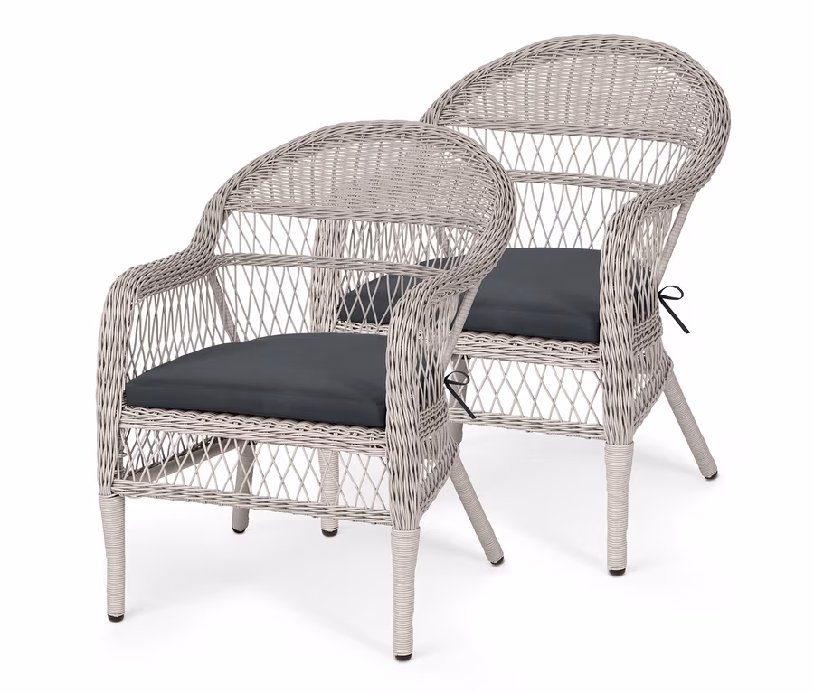 Diese Gartensessel sind die ideale Ergänzung für jede Outdoor-Lounge, den Gartentisch – oder man nutzt sie einfach freistehend am Lieblingsplatz im Grünen. Die UV- und witterungsbeständigen Sessel haben stabile Aluminiumrahmen und sind mit hochwertigem, offenem Polyrattangeflecht umwickelt, was ihnen eine optische Leichtigkeit verleiht. Die Stühle haben bequem gepolsterte, graue Sitzkissen, deren Bezüge abnehmbar und waschbar sind.