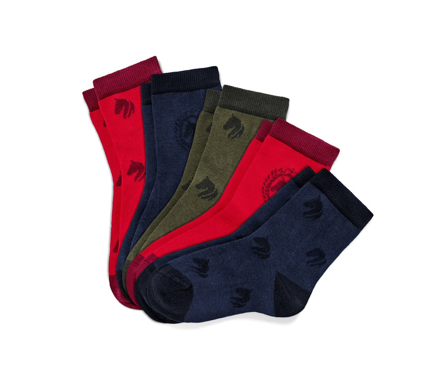 - 1x rot mit Pferde-Dessin, 1x dunkelblau mit platziertem Pferdekopf, 1x olivegrün mit Pferde-Dessin, 1x rot mit platziertem Pferdekopf, 1x dunkelblau mit Pferde-Dessin