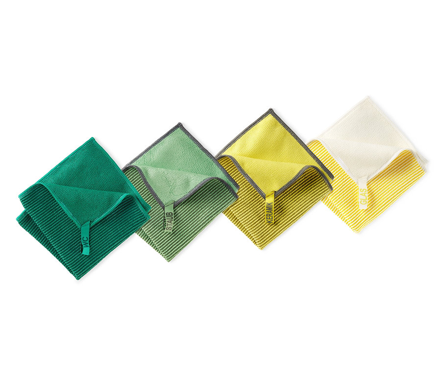 Mit diesen vier Universal-Reinigungstüchern kommt bei der Sauberkeit nichts durcheinander. Die Tücher sind für viele unterschiedliche Oberflächen wie beispielsweise Fliesen, Keramik oder Glas geeignet und sie sind langlebig, fusselfrei sowie saugstark. Durch ihre Farbcodierung sowie die deutsch-englische Beschriftung lassen sich die Reinigungstücher besonders einfach unterscheiden und gesondert für verschiedene Haushaltsbereiche anwenden.