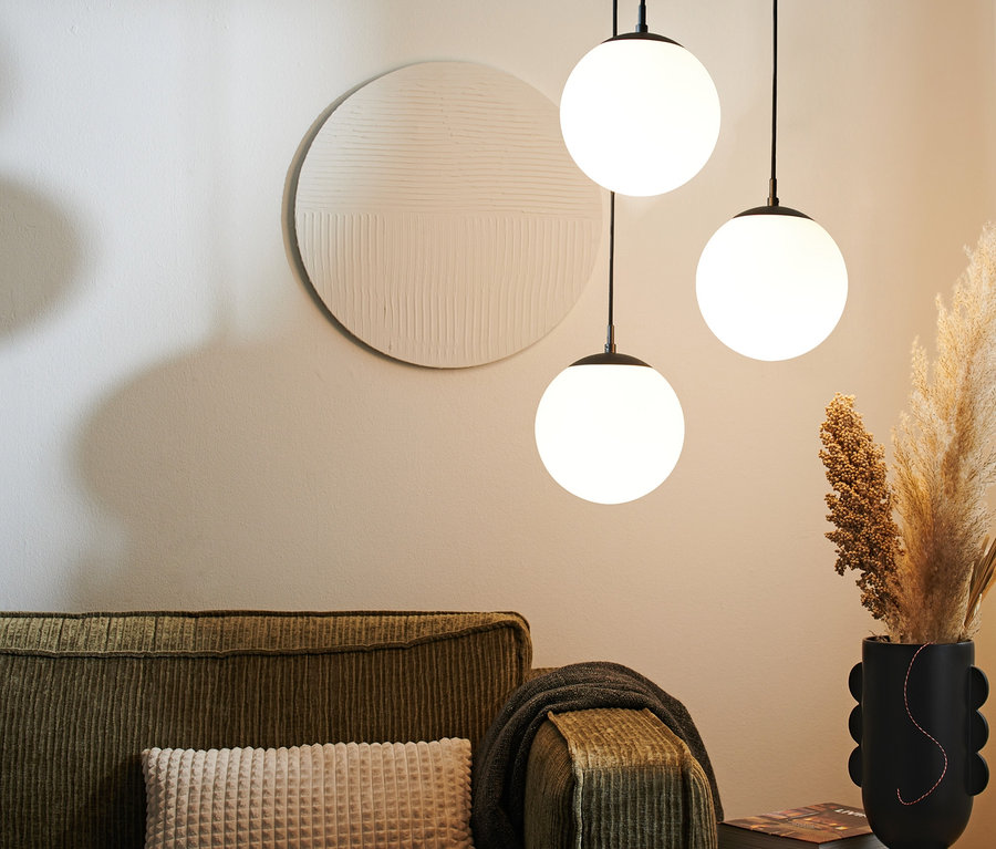 Hängeleuchte mit Glaskugeln, 3-flammig, rund