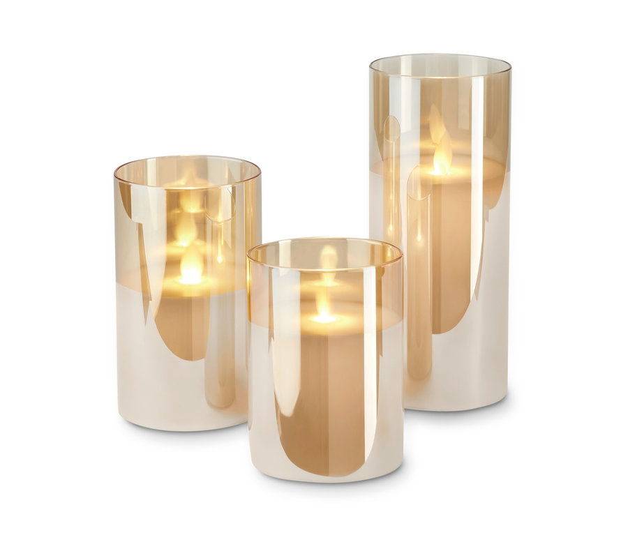 3 LED-Echtwachskerzen im Glas