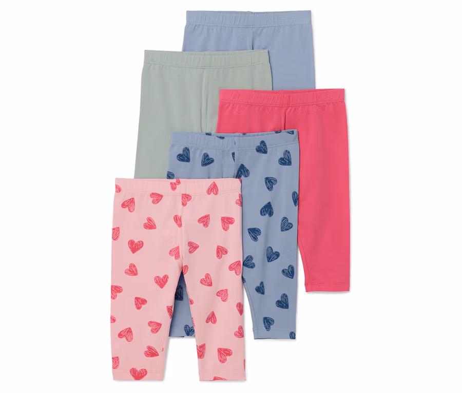 1x hellrosa mit pinkem Herzen-Alloverprint, 1x pink, 1x hellblau mit blauem Herzen-Alloverprint, 1x graugrün, 1x hellblau
