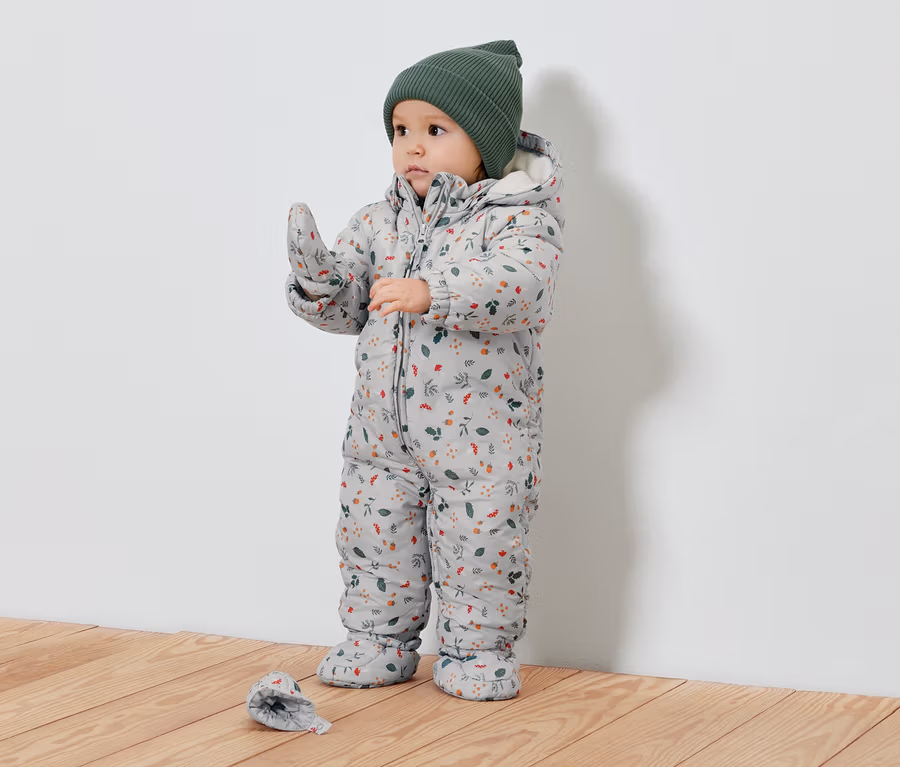 • Abknöpfbare, wattierte Handschuhe und Füßlinge