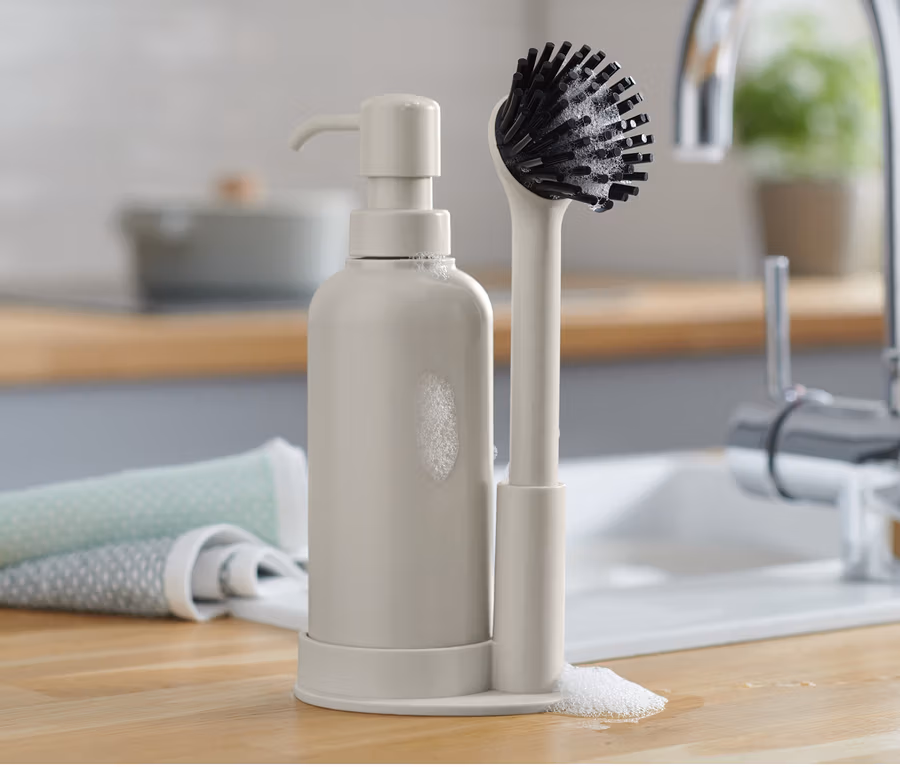 - Inkl. Seifenspender, Spülbürste und Halterung