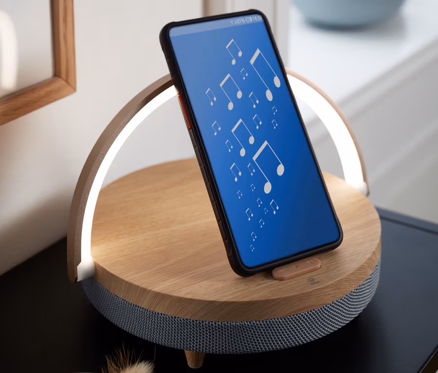 Bluetooth-Lautsprecher mit kabellosem Ladegerät und LED-Nachtlicht