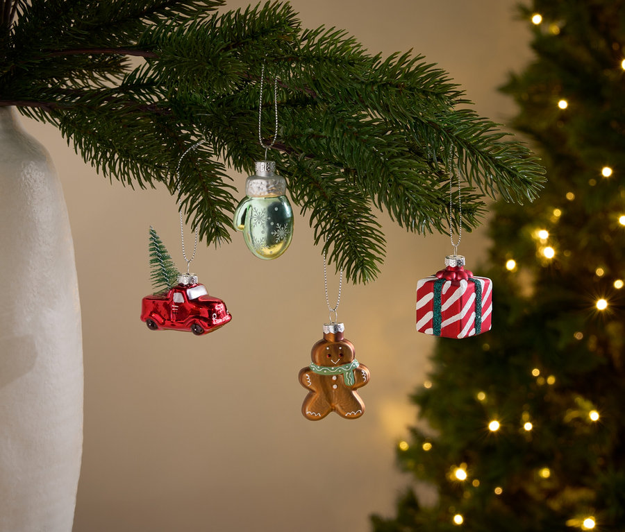 • 4 Motive: Lebkuchenmann, Geschenk, Handschuh und Auto mit Weihnachtsbaum