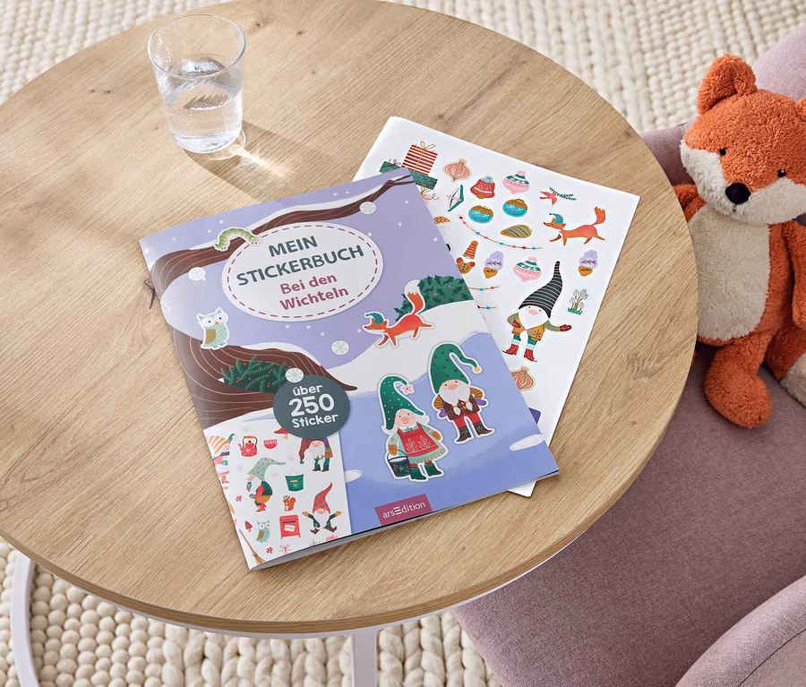 Ideale Ergänzung zur Wichteltür: Ob der Wichtel es als Geschenk vor seine Türe legt oder die Tante es mitbringt – das Stickerbuch bringt Kinderaugen zum Leuchten