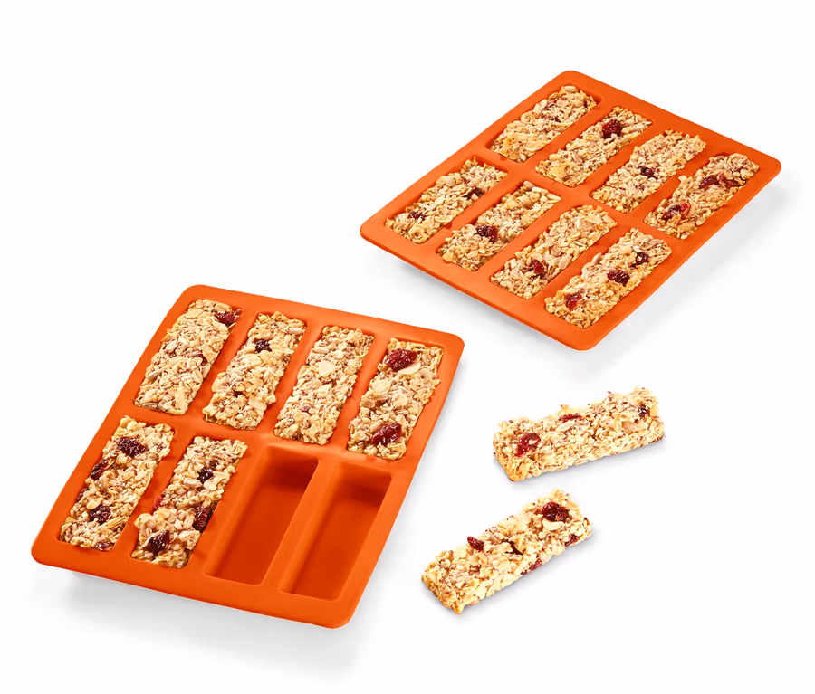 - 2 Silikon-Backformen zur Herstellung von bis zu 16 Müsliriegeln