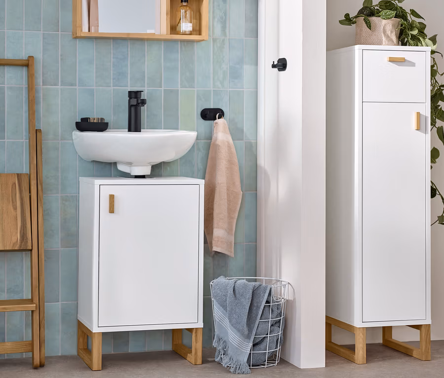 Bad-Beistellschrank mit Schublade und Tür, schmal