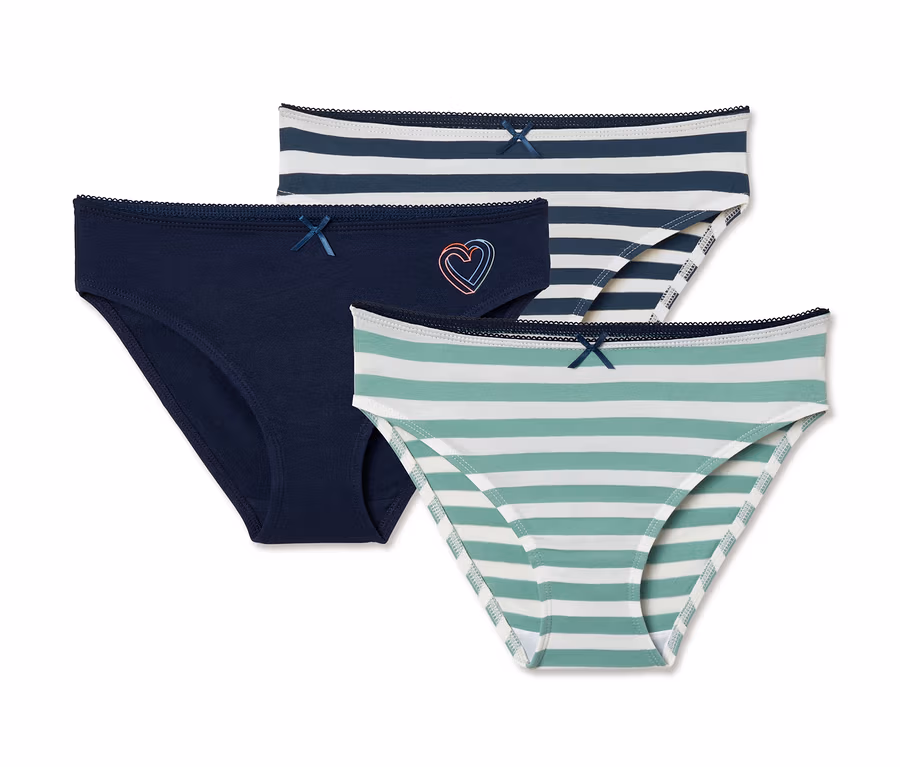 Mit diesen Slips macht das Anziehen Kindern morgens noch mehr Spaß. Zweimal gestreift und einmal mit einem platzierten Herzmotiv in Regenbogenfarben können die Unterhosen in angenehm weicher Single-Jersey-Qualität schnell zu Lieblingsteilen werden. Die nachhaltigen, GOTS zertifizierten Slips liegen durch den hohen Baumwollanteil besonders angenehm auf der Haut und sie sind durch das enthaltene Elasthan formbeständig, tragekomfortabel und perfekt sitzend. Sie verfügen über einen bequemen Bund mit elastischer Zierkante.