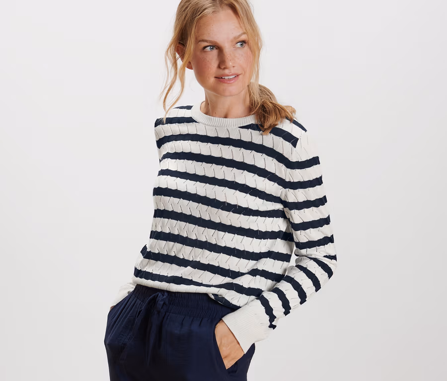 - Breite Rippbündchen an Saum und Ärmelabschluss