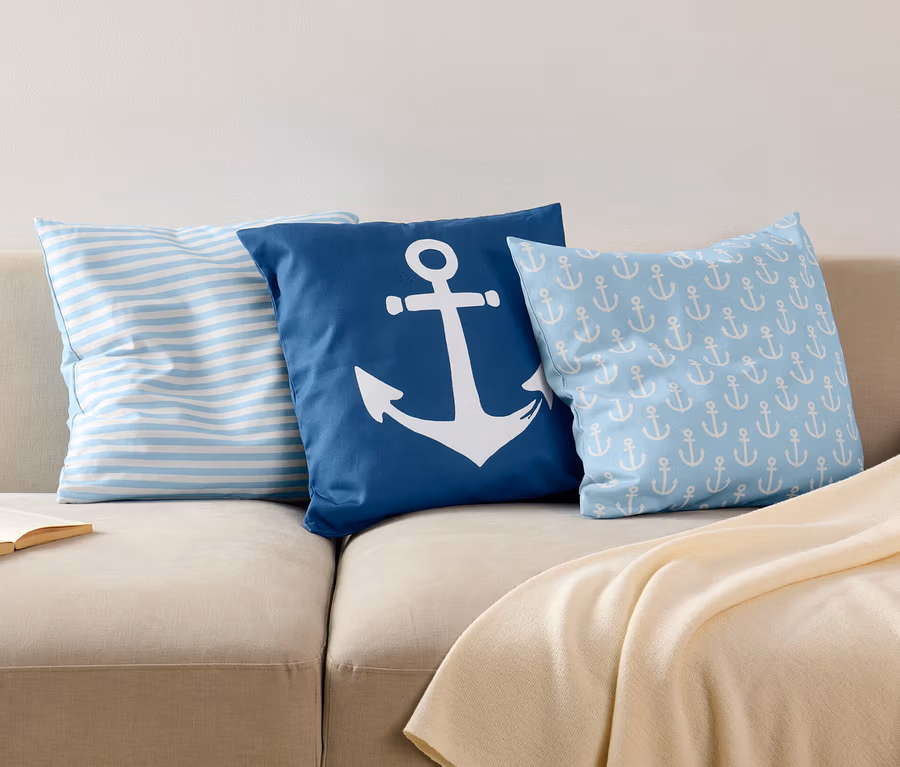 1x 1 Seite blau mit Anker-Print, 1 Seite blau