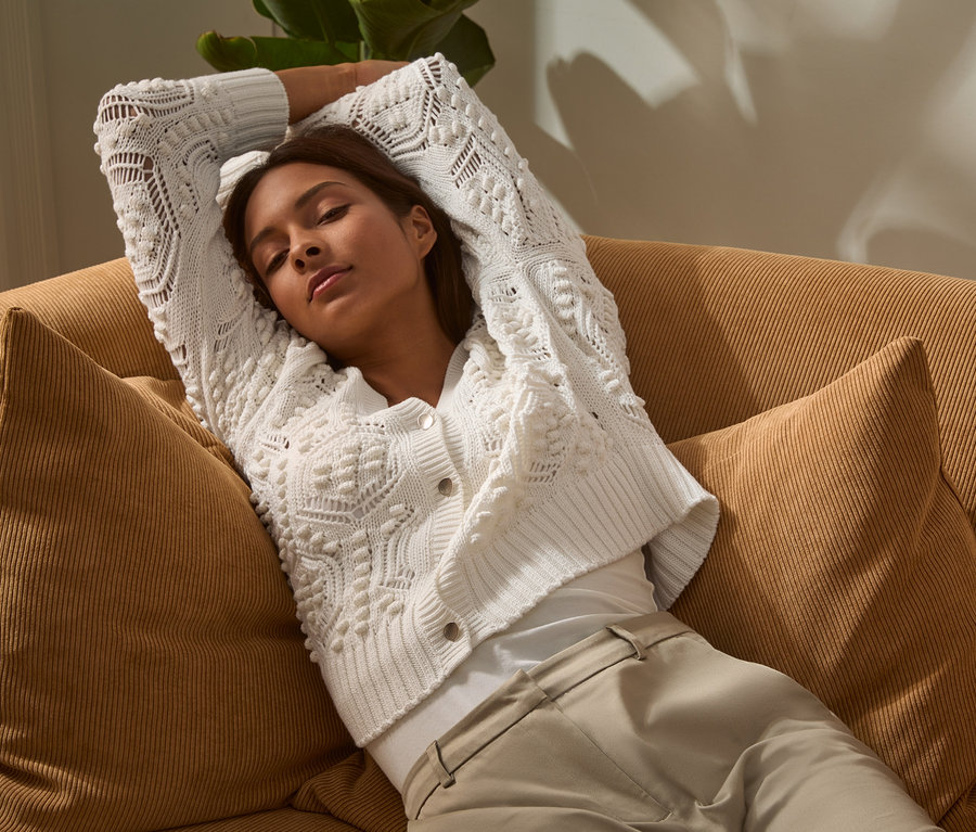 - Rippbündchen an Ausschnitt, Ärmelabschluss und Saum